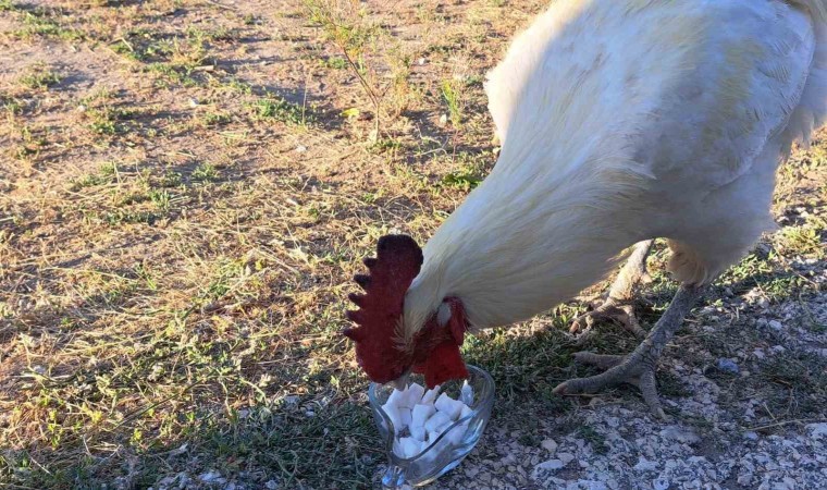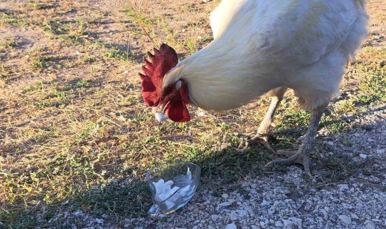 BİTLİS (İHA) – Bitlis’in Adilcevaz ilçesinde önüne konulan kesme şekeri yiyen horoz görenleri şaşırtıyor.