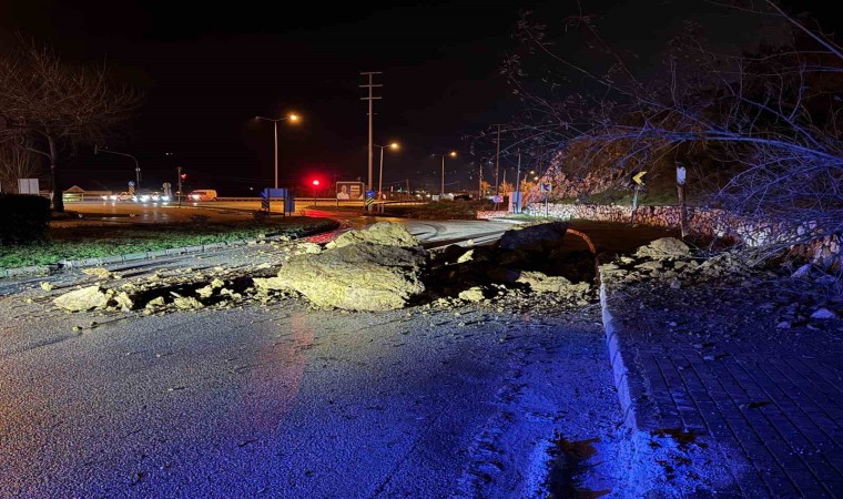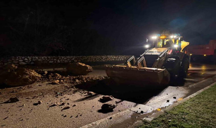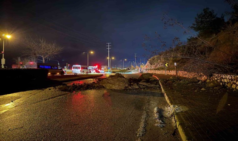 Yola düşen devasa kaya parçaları ve toprak birikintileri sebebiyle kapatılan caddeden geçmek isteyen sürücüler, alternatif yollara yönlendirildi. Olay yerine gelen iş makinelerinin düşen kayaları kaldırmasının ardından, yol tek taraflı olarak trafiğe açıldı.