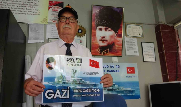 Sakladığı şarapnel parçalarını övünç kaynağı olarak gördüğünü söyleyen Kıbrıs Gazisi Hakkı Gürses, “Kıbrıs Barış Harekatı’na fiilen katıldım. Mareşal Fevzi Çakmak Gemisi’nde telsizci olarak görev aldım. 20 Temmuz sabahı Girne önlerinde 5 gemi olarak görev yaptık. Girne Limanı’nın birkaç mil açıklarında bombalama yaptık. Kıbrıs Barış Harekatı’nın ardından Gölcük Tersanesi’nde 1975 yılının Şubat ayında onarıma girdik. Onarım sırasında hasar alan yerler kesilmiş. Ben de telsiz kamarasının koridorundan geçerken tesadüfen gördüm. Şarapnel parçalarını aldım ve dolabımda sakladım. Bana nasip oldu, 50 yıldır da benimle birlikte yaşıyorlar. Bana ziyarete gelen herkese gösteriyorum. Bunlar benim övünç madalyalarım. Kıbrıs Barış Harekatı’nın 50’nci yılında Kıbrıs Gazisi olarak devletimizden bir onur madalyası beklemiştik. Fakat böyle bir şey uygun görülmedi veya imkanlar olmadı. Gemimden kopan 2 şarapnel parçası benim manevi zenginliğim. Bunlar benim madalyalarım. Bunlarla övünüyorum ve ileride torunlarıma teslim edeceğim” diye konuştu.