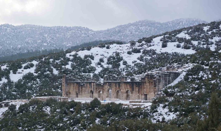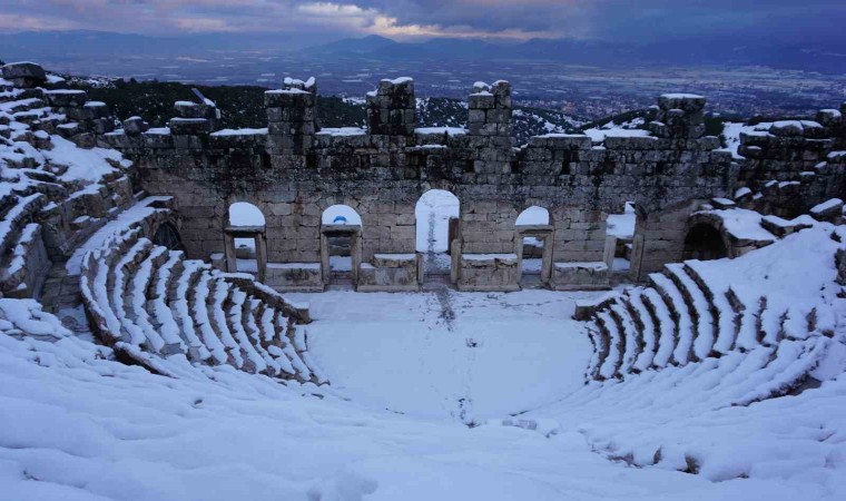 Tarihte gladyatörler şehri olarak bilinen ve Anadolu’nun saklı cennetlerinden biri olan Kibyra Antik Kenti, tarih ve arkeoloji meraklılarını kendine hayran bırakıyor. Burdur’un Gölhisar ilçesinde yer alan bu antik kent, Roma Dönemi’ne ait yapıları ve ihtişamıyla etkileyici. Helenistik dönemden Osmanlı’ya kadar uzanan çok katmanlı yapısıyla dikkat çeken kentte kazı ve restorasyon çalışmaları sürüyor. Geçtiğimiz günlerde yoğun kar yağışı sonrası beyaza bürünen Kibyra, fotoğraf ve video çekmek isteyen ziyaretçilerin ilgisini çekti.