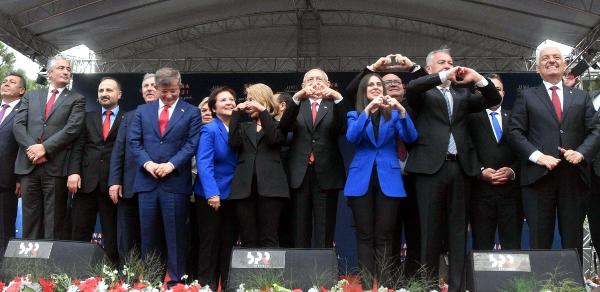 Gelecek Partisi Genel Başkanı Ahmet Davutoğlu ise 6 genel başkan ve iki belediye başkanı ile Anadolu'yu adım adım dolaştıklarını belirtip, "Değişimin ayak izleri görülüyor. Yeni bir Türkiye, yeni bir bahara doğru yürüdüğümüzü herkes görüyor. Biz zaten görüyoruz. Bizim yüreğimiz açık. İktidarlarını kendi cepleri, yakınları için düşünenler de görüyorlar. Onun için de paniğe kapıldılar. Söyledikleri söz, ortaya koyacakları vizyon kalmayınca bizi tehdit ediyorlar. Parlamenter sistemde, ucube cumhurbaşkanlığı hükümet sistemine kadar 3 bakanlık seçim öncesi istifa ederlerdi. Biri Adalet Bakanı, biri Ulaştırma Bakanı, biri de İçişleri Bakanı. Şimdi bırakın istifa etmeyi en militanları İçişleri Bakanı ile Adalet Bakanı. Ne diyor Adalet Bakanı? Muhalefet teröristlerle iş birliği yapıyormuş. Türkiye Cumhuriyeti tarihinde herhangi birimizin terörle bağlantısı varsa işte meydan. Biz hukuktan kaçmadık" dedi. (DHA)