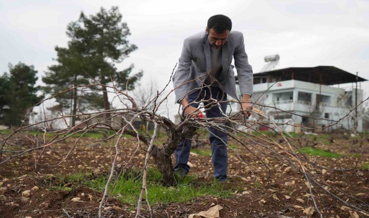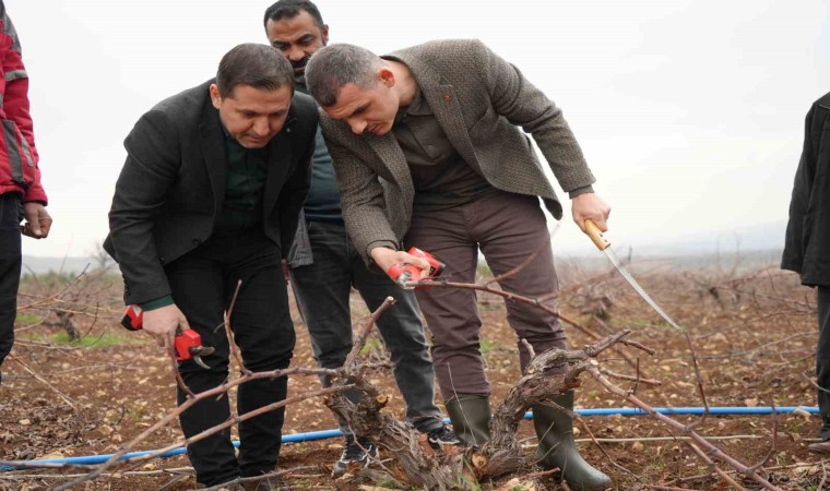Kilis’in Musabeyli ilçesinde yetişen kurutmalık, sofralık ve pekmez yapımında en çok tercih edilen Kilis horozkarası üzümünde budama mesaisi başladı.