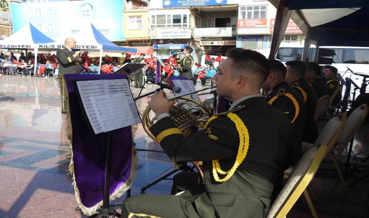 Cumhuriyet Meydanı’nda, Cumhuriyetin 100. Yıl dönümü dolayısıyla münasebetiyle 6’ıncı Kolordu Bölge Bando Komutanlığı konser verdi. Konsere Kilis Valisi Tahir Şahin, Kilis Belediye Başkanı Servet Ramazan, Kilis 7 Aralık Üniversitesi Rektörü Mustafa Doğan Karacoşkun, İl Jandarma Komutanı Albay Halil Coşkun, İl Emniyet Müdürü Ahmet Kurt, STK temsilcileri ve çok sayıda vatandaş katıldı. Yaklaşık 1 saat süren konsere vatandaşlar ilgi gösterdi.