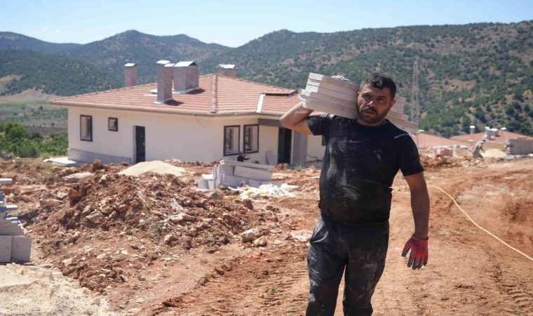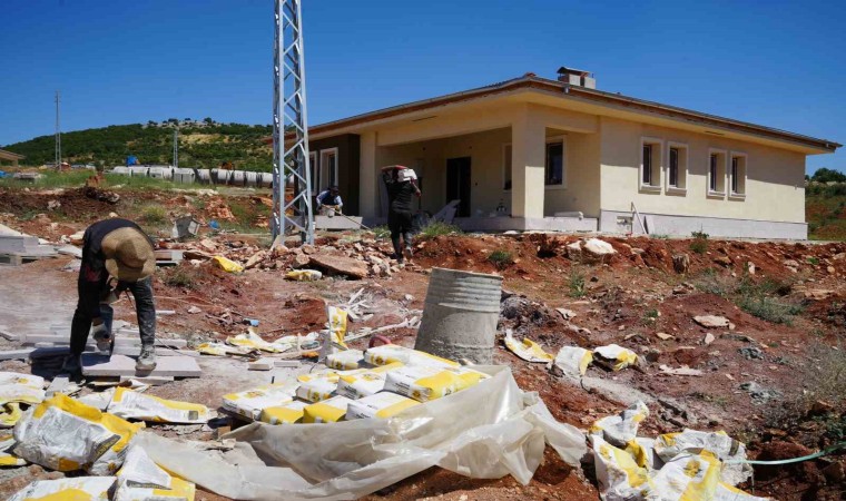 Kilis’in Musabeyli ilçesinde depremzedeler için yapılan tek katlı 3+1 köy evlerinin inşası hız kesmeden devam ediyor.