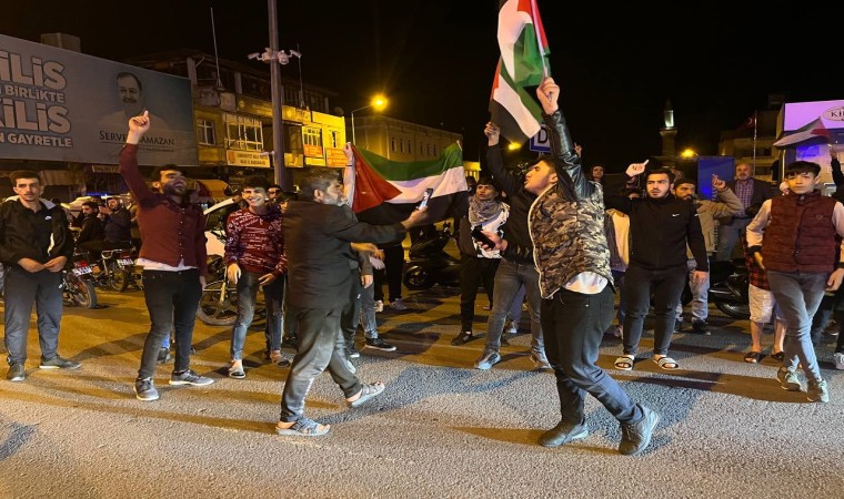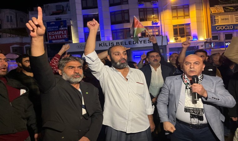 İsrail’in Gazze Şeridi’ndeki El-Ehli Baptist Hastanesine düzenlendiği saldırı sonrası Kilis’te meydanda toplanan vatandaşlar sokaklara inerek İsrail’e tepki gösterdi.
