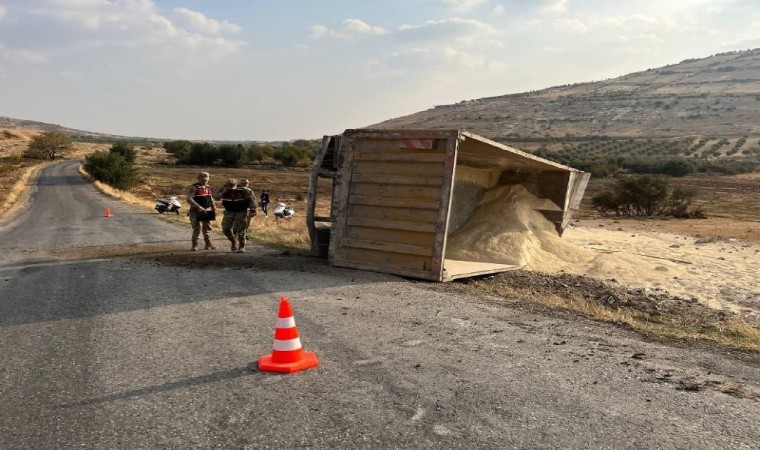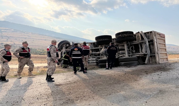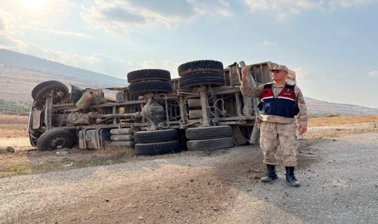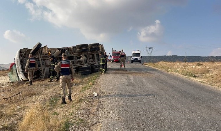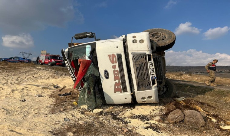 Kilis’te kum yüklü kamyon devrilmesi sonucu kamyonda yolcu olarak bulunan 1 kişi yaralandı.