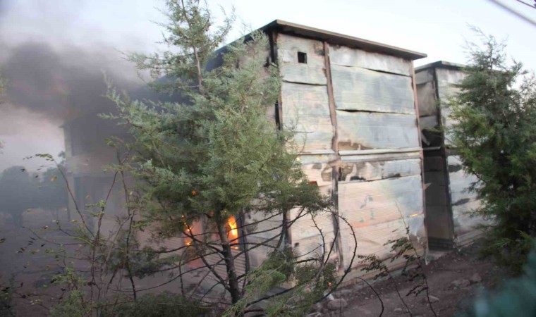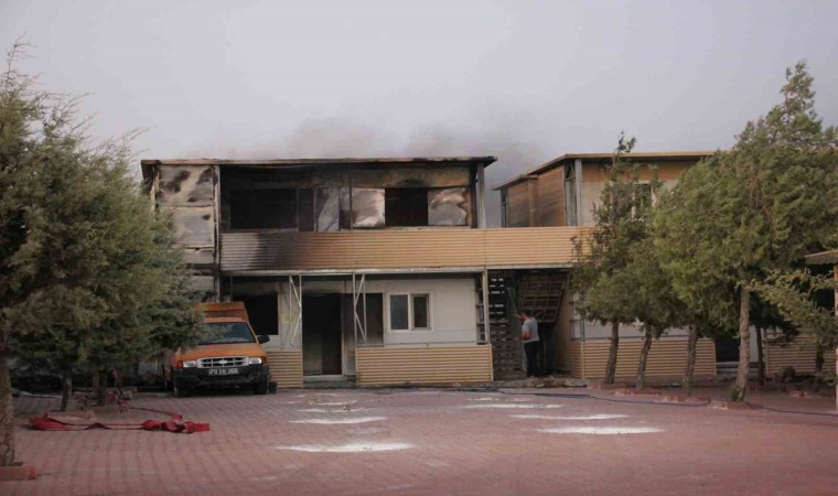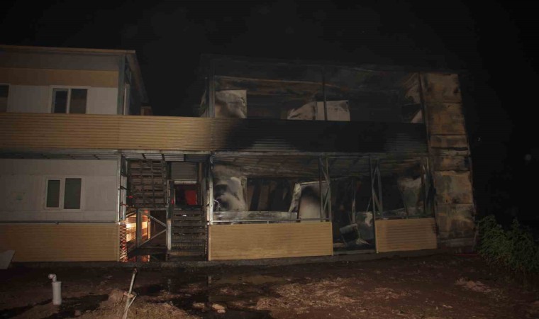 Yangında alanda bulunan iki katlı konteyner kullanılamaz hale geldi.