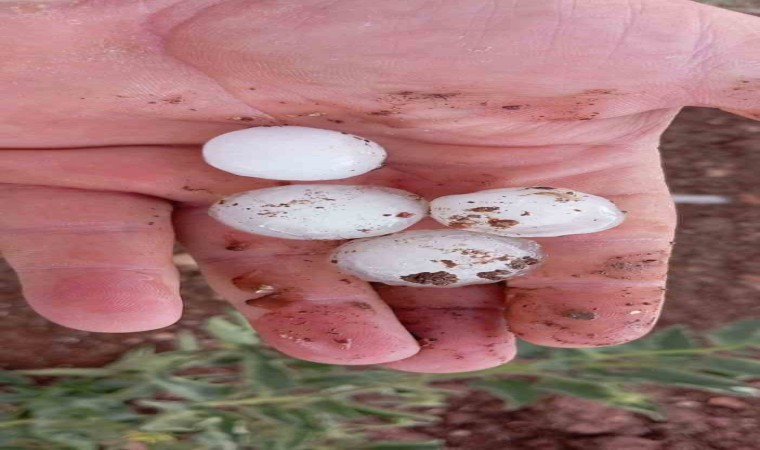 Kilis’in Musabeyli ilçesinde etkili olan şiddetli yağmur ve dolu yağışı nedeniyle zeytin ve fıstık ağaçları zarar gördü.