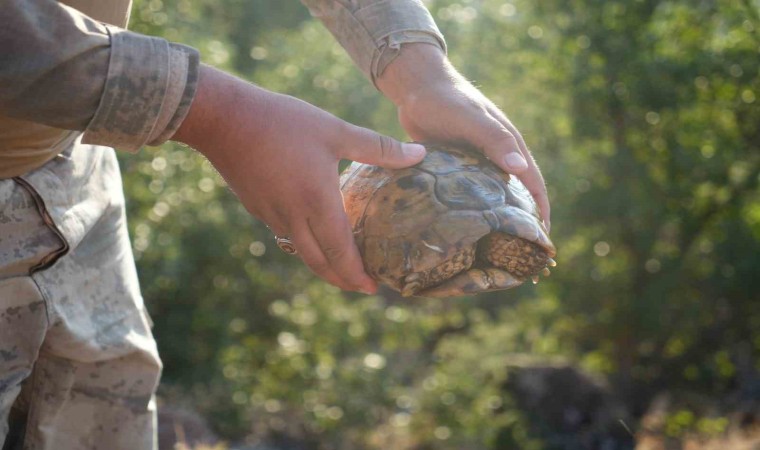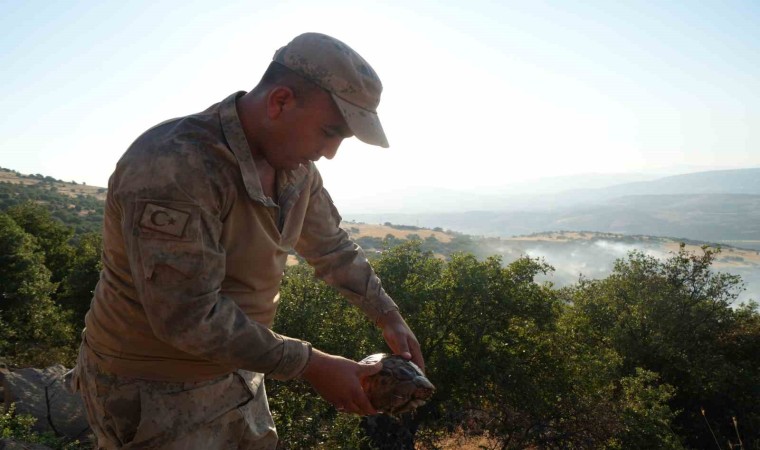 Kilis’in Polateli ilçesinde çıkan orman yangınında mahsur kalan kaplumbağayı jandarma ekipleri kurtardı.