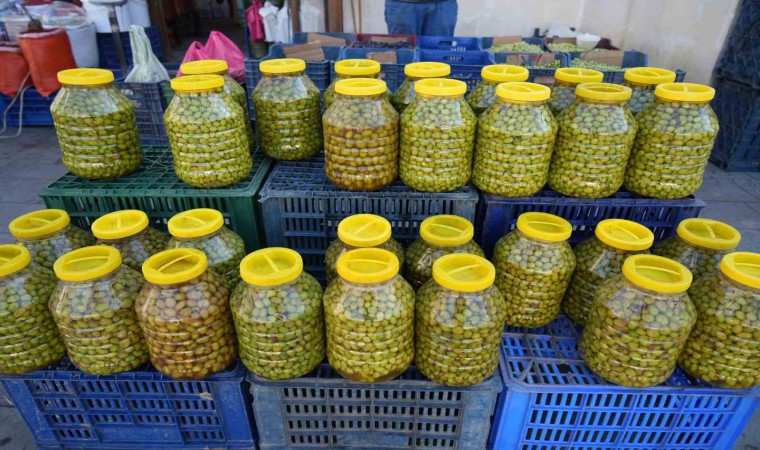 Önemli bir zeytin üretimine sahip olan Kilis’te, yeni mahsul yerli sofralık yeşil zeytin pazarda satılmaya başlandı. Pazarda 50-80 TL arasında satılan sofralık yeşil zeytin yoğun ilgi görüyor. Kilis’te zeytin bahçesi olmayan vatandaşlar, pazardan aldıkları yeşil zeytinleri evlerinde bidonlara koyarak tatlandırdıktan sonra kahvaltıda tüketiyor.