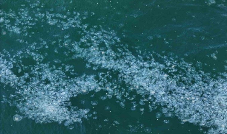 Marmara Denizi’nde kilometrelerce uzunlukta yayılan denizanası havadan çekilen görüntülerle gözler önüne serildi. Uzmanlar denizanası popülasyonu artışında küresel ısınma ve deniz kirliliğini etken gösterdi.