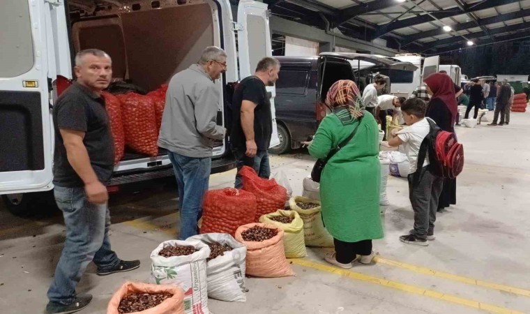DÜZCE (İHA) – İstanbul ve Ankara başta olmak üzere çeşitli illerden kestaneseverler, lezzeti ve aromasıyla yoğun talep gören Düzce kuzu kestanesini alabilmek için akşam saatlerinde açılan kestane pazarına akın ediyor. Şehir merkezindeki Hamidiye Mahallesi’nde kurulan pazar, gecenin ilerleyen saatlerine kadar kuzu kestane almak isteyen meraklıları bir araya getiriyor.