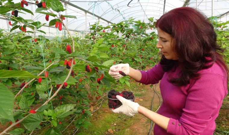 Mersin’de örtü altında yetiştirilen üreticisinin de yüzünü güldüren turfanda ’karadut’ hasadı devam ederken hem ülke içinden hem de yurtdışından talep görüyor.