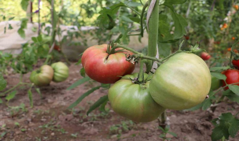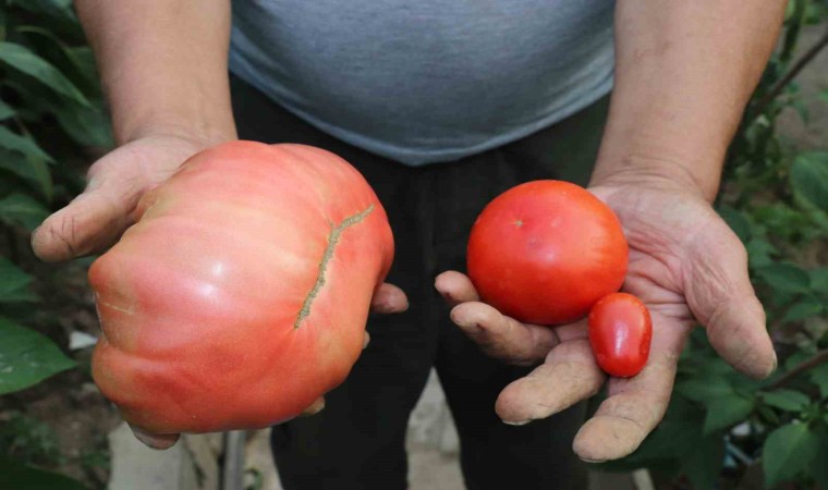 Tokat’ta evinin bahçesindeki serasında çeşitli ürünler yetiştiren Bülent İçmez, Amerika’dan 20 yıl önce gelen domates tohumlarını kullandı. Bir tanesi 1 kiloyu geçen domatesler dikkat çekiyor.