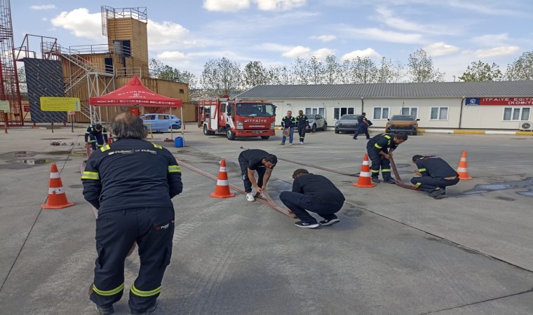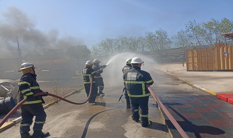 Kocaeli’de itfaiye personelleri, bir kimya fabrikasının acil durum ekiplerine, profesyonel müdahale birimleri gelene kadar yangına doğru müdahale konusunda eğitim verdi.