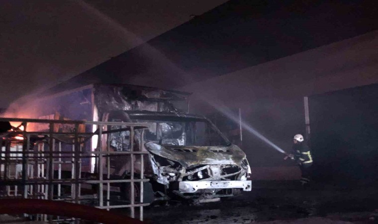 Yangının sıçradığı bir kamyonet de alev alev yanarak hurdaya döndü.