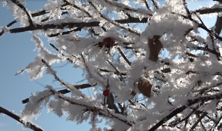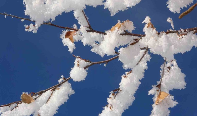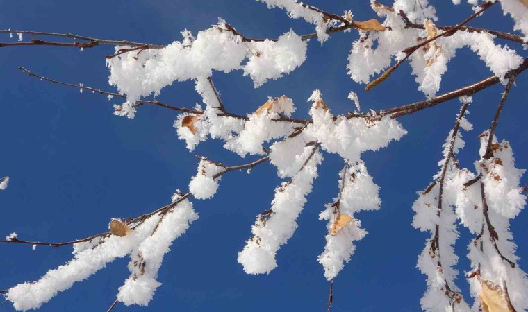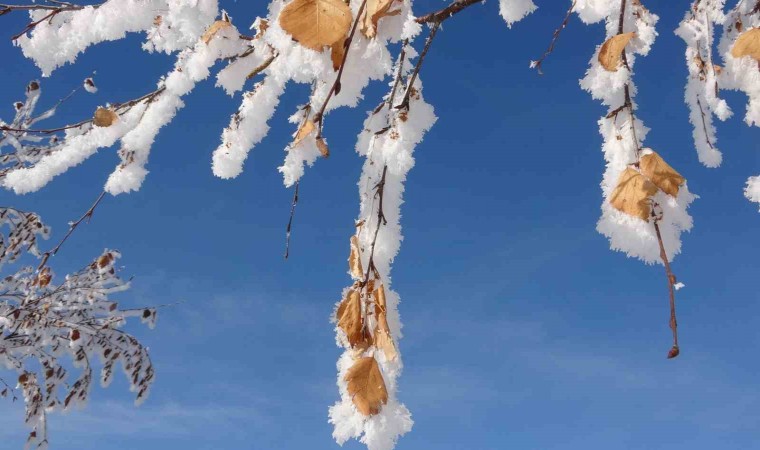 Ardahan’da etkili olan soğuk hava hayatı olumsuz etkilerken, kırağı tutan ağaçlar ise kartpostallık görüntüler oluşturdu.