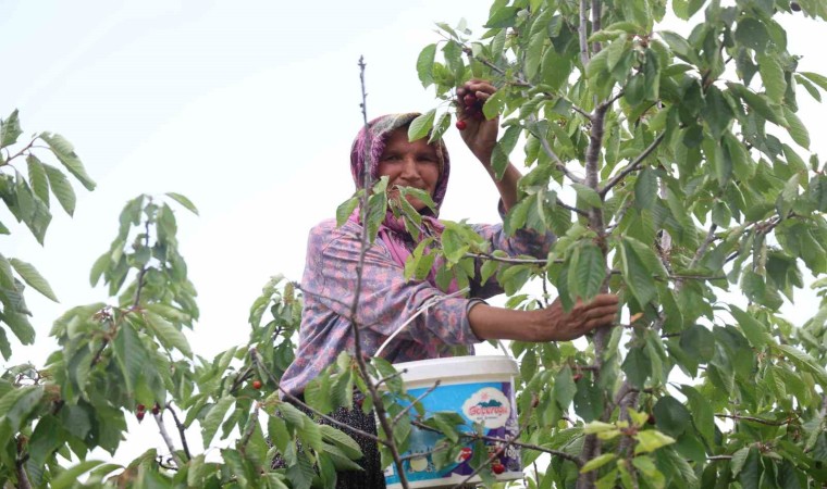Adana’nın Kozan ilçesinde kiraz hasadı için işçi bulamayınca köylüler kirazı imece usulü hasat etti.