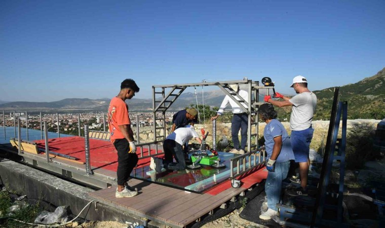 Kirazlıdere’de vatandaşlara hizmet veren restoran kafe önündeki alana Isparta Belediyesi tarafından Türkiye’nin sayılı ve büyük cam teraslarından birisi inşa ediliyor. Yerden 25 metre yükseklikte 35 metre uzunluğunda, 300 metrekarelik cam seyir terasının çelik montajlarının tamamlanmasının ardından cam terasın elektrik altyapı çalışmaları da bitirildi. Terasın aydınlatılması ve görsel ışık şovu için döşenen elektrik altyapısının tamamlanmasının akabinde yürüyüş yolu ve seyir terasının camlarının montajına başlandı. Ekipler gelen özel kesim camları büyük bir titizlikle terasa yerleştiriyor. Cam seyir terasının tamamlanmasıyla birlikte ziyaretçiler şehri daha geniş bir görüş alanından izleyebilecekler, doğal güzellikleri panoramik bir şekilde gözlemleyebilecekler. Böylece Kirazlıdere Cam Seyir Terası yerli ve yabancı turistlerinde ilgisi çeken önemli bir destinasyon alanı haline gelmiş olacak.