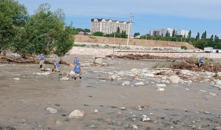 Kırgızistan’ın Oş şehrinde dün sağanak yağış nedeniyle nehrin taşması sonucu pazar yeri, parklar ve evler sular altında kalmış, insanlar binaların çatılarına çıkarak yardım beklemişti.