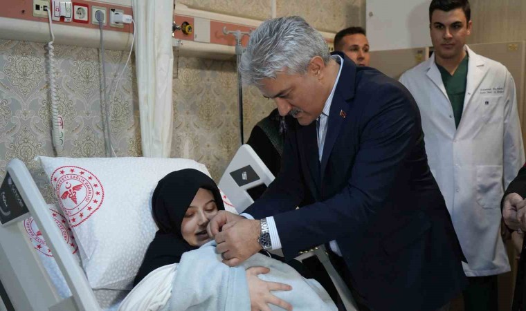 Vali Mehmet Makas ve Belediye Başkanı Mehmet Saygılı, yeni doğan iki bebeğe altın taktı, hastane personelinin yeni yılını kutladı.