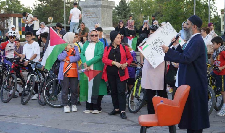 Konuşmanın ardından Filistin’e destek amacıyla bisiklet konvoyu oluşturuldu. Vatandaşlar da ellerinde Filistin bayrakları ve pankartlarla sloganlar atarak yürüyüş yaptı.