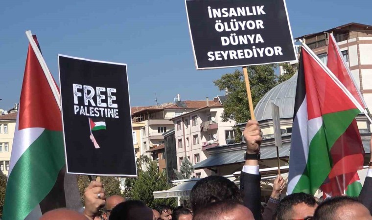 Kırıkkale Nur Camii’nde, cuma namazının ardından Filistin’deki saldırılarda hayatını kaybedenler için dualar edilip, gıyabi cenaze namazı kılındı.