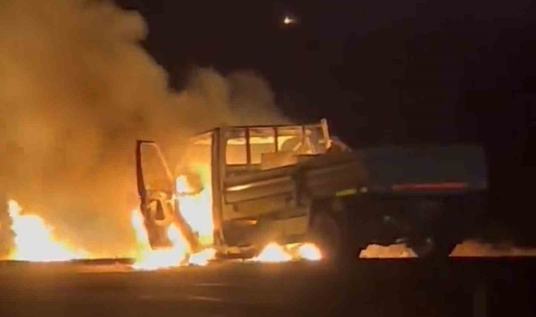 Yangın, gece saatlerinde Kırıkkale-Konya kara yolu üzerindeki Karaahmetli köyü yakınlarında meydana geldi. Edinilen bilgiye göre, sürücüsü henüz öğrenilemeyen 42 GR 216 plakalı kamyonet, seyir halindeyken motor bölümünden alev aldı. Kısa sürede büyüyen alevler, kamyoneti tamamen kapladı. Araç sürücüsünün durumu 112 Acil Çağrı Merkezi’ne bildirmesi üzere olay yerine, itfaiye ve jandarma ekipleri sevk edildi. Ekipler, yarım saatlik çalışmanın ardından yangını söndürdü. Tamamen yanan kamyonette ise büyük çapta maddi hasar meydana geldi. Jandarma ekiplerince yapılan çalışmanın ardından kamyonet, çekici yardımıyla otoparka kaldırıldı.