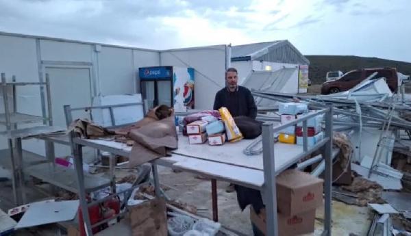 Burak CAN/KIRIKKALE, (DHA)- KIRIKKALE'nin Bahşılı ilçesinde etkili olan şiddetli rüzgarda Toplu Konut İdaresi Başkanlığı'na (TOKİ) ait bir şantiyenin yemekhanesi yıkıldı, bazı binaların çatılarındaki kiremitler etrafa savruldu.