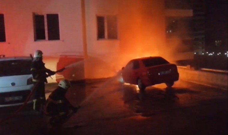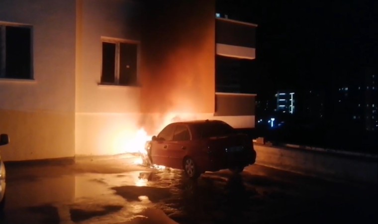 Kırıkkale’nin Yahşihan ilçesinde bir sitenin bahçesinde bulunan park halindeki otomobil alev alev yandı.