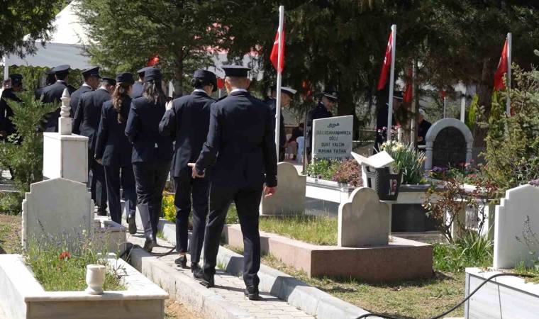 Kırıkkale İl Emniyet Müdürlüğü tarafından Türk Polis Teşkilatı’nın 179’uncu kuruluş yıl dönümü dolayısıyla şehitlikte ziyaret programı düzenlendi. Kırıkkale Şehitliği’nde düzenlenen program saygı duruşunda bulunulup, İstiklal Marşı’nın okunmasıyla başladı. Şehitler için okunan Kur’an-ı Kerim ve edilen duaların ardından İl Emniyet Müdürü Mustafa Emre Başbuğ ve Polis Meslek Yüksekokulu Mustafa Evren Yoğurtçu, şehit mezarlarına karanfil bıraktı. Başbuğ ve Yoğurtçu, şehit ailelerine başsağlığı dileyerek, Ramazan Bayram’ını kutladı.