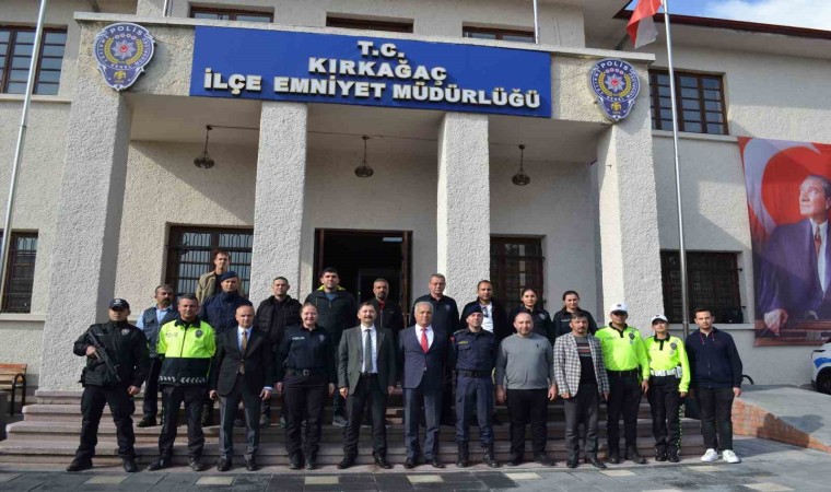 Kırkağaç İlçe Emniyet Müdürlüğü önünde gerçekleştirilen törene Kırkağaç Kaymakamı Zafer Oktay, Kırkağaç Belediye Başkanı Üstün Dönmez, Kırkağaç Jandarma Komando Eğitim Merkez Komutanlığın Albay Adem Şakrak, Kırkağaç Cumhuriyet Savcısı Müge Bal, İlçe Emniyet Müdürü Sayım Başaran, İlçe Jandarma Komutanı Servet Çelenk, Sarı Hoca Kültür ve Yardımlaşma Derneği Başkanı İsmail Pala ile polis memurları katıldı.