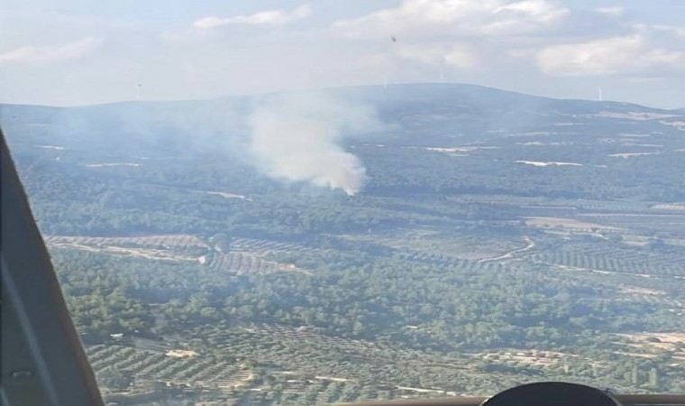 Manisa’nın Kırkağaç ilçesinde ormanlık alanda çıkan yangına havadan ve karadan müdahale sürüyor.