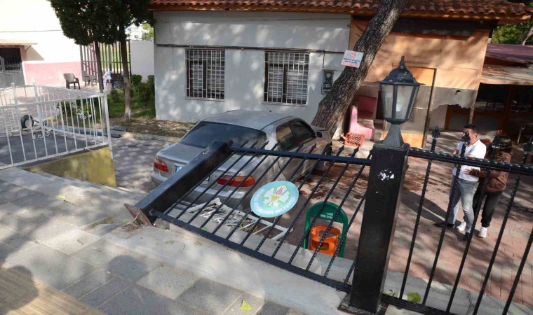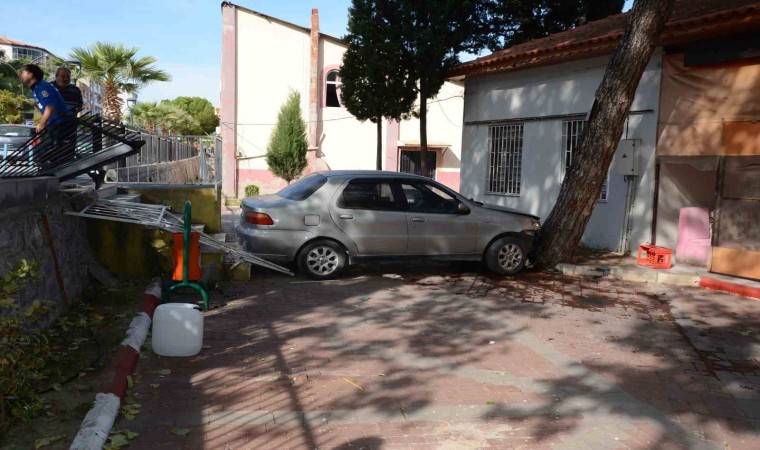 Manisa’nın Kırkağaç ilçesinde kontrolden çıkan aracın belediye parkına uçtuğu trafik kazasında sürücü yaralandı, kaza anı güvenlik kamerasına yansıdı.