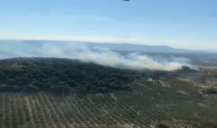 Manisa’nın Kırkağaç ilçesinde çıkan orman yangınına havadan ve karadan müdahale ediliyor.
