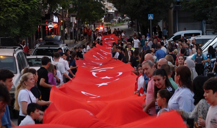 Daha sonra Ekici ve beraberindekiler Özgürlük ve Demokrasi Meydanı’nda yaklaşık 100 metre bayrak ile kentin sokaklarında kortej eşliğinde yürüyüş yaptı.