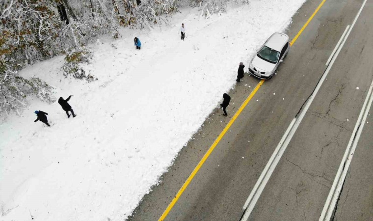 Kırklareli’nin yüksek kesimlerinde kar yağışı etkili oldu, karın tadını çıkarmak isteyen vatandaşlar Dereköy Sınır Kapısı’na gitti.