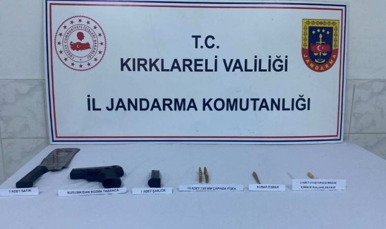 Kırklareli İl Jandarma Komutanlığınca, Lüleburgaz, Demirköy ve Babaeski ilçelerinde yaptıkları çalışmada, 140 litre alkollü içki, 6 gram kubar esrar, 18 adet tabanca fişeği, 3 adet uyuşturucu kullanma aparatı, 2 adet tabanca ele geçirildi.
