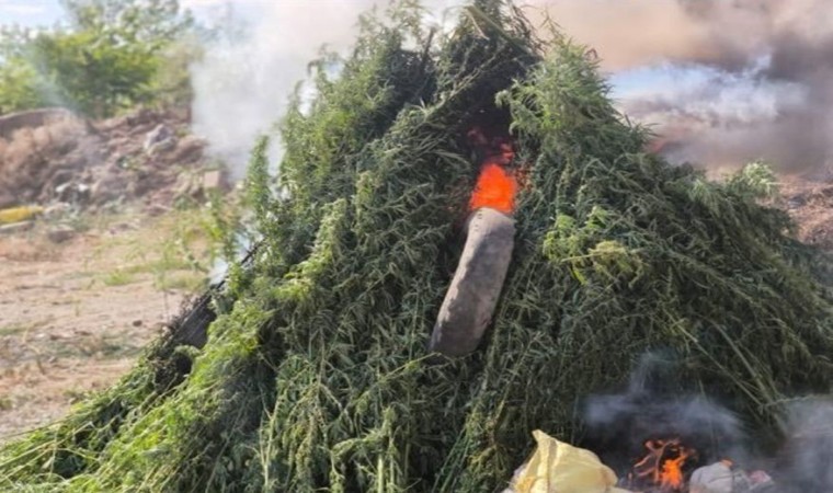 Tarlada bulunan Hint kenevirleri ekipler tarafından imha edildi.