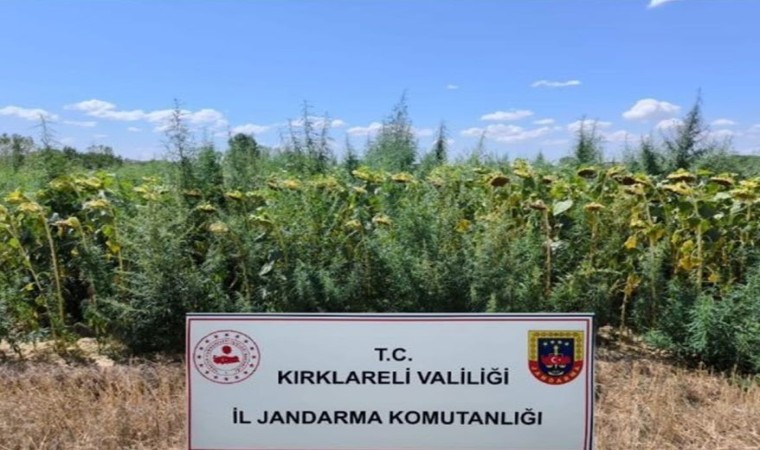 Kırklareli’nde jandarma ekiplerince ayçiçek tarlasında ekili 575 bin 541 kök Hint keneviri imha edildi.