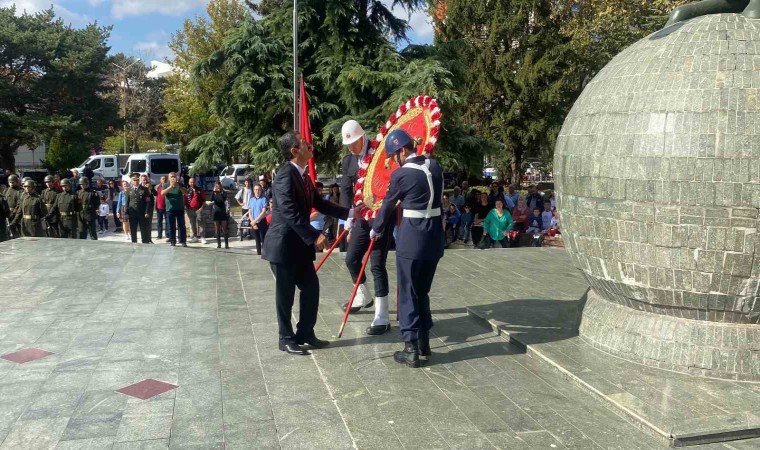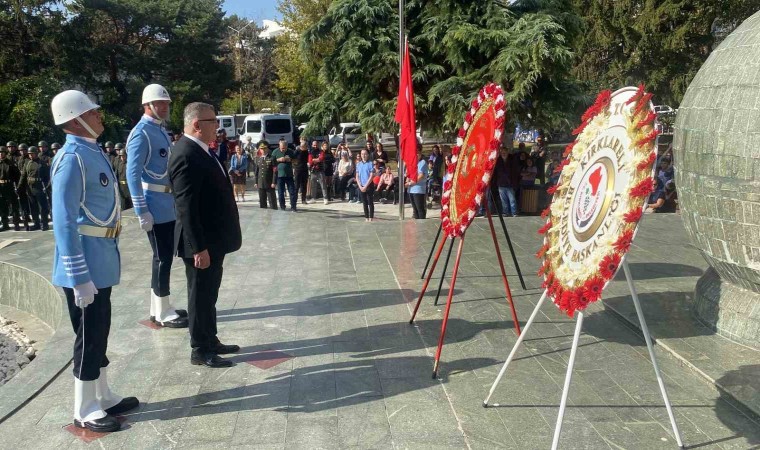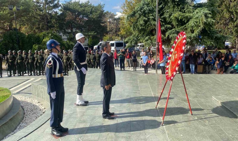 Özgürlük ve Demokrasi Meydanında bulunan Atatürk Anıtında Valilik, Garnizon Komutanlığı ile Belediye Başkanlığı çelenkleri koyuldu.