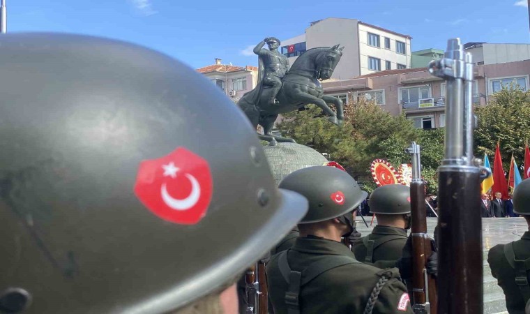 Kırklareli’nde Cumhuriyet’in 100’üncü yıldönümü olan 29 Ekim Cumhuriyet Bayramı dolasıyla çelenk sunma töreni düzenlendi.