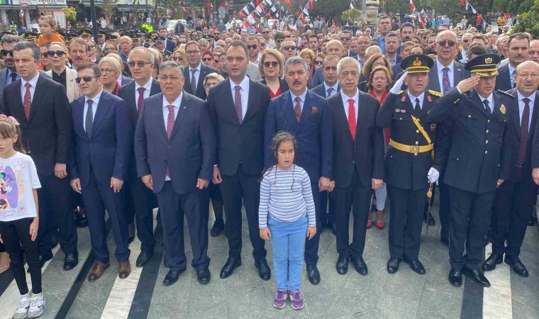 Çelenk sunumlarının ardından saygı duruşu ve İstiklal Marşı okundu. Törene, Vali Birol Ekici, 55.Mekanize Piyade Tugay Komutanı Tuğgeneral Mustafa Cüneyt Arıkan, Belediye Başkanı Mehmet Siyam Kesimoğlu daire müdürleri, siyasi parti temsilcileri, öğrenciler ve vatandaşlar katıldı.