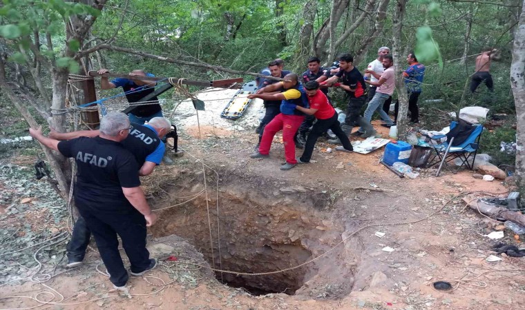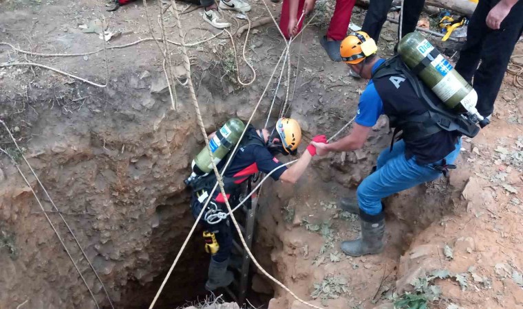 Bölgeye; AFAD, jandarma ve sağlık ekipleri sevk edildi. Bölgeye gelen ekipler; 1,5 metre genişliğinde 13 metre derinliğinde kazılan çukurda mahsur kalan 3 kişiyi kurtarmak için çalışma başlattı. Kazılan çukura inen ekipler 2 kişiyi kurtarırken, E.Ç.’nin (38) hayatını kaybettiğini belirledi.