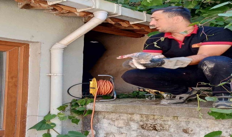 İki apartman arasında sıkışan yavru kedi itfaiye ekipleri tarafından kurtarıldı.
