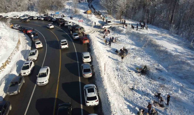Kar görmek için araçlarıyla jandarma kule mevkiine gelen vatandaşlar, yağan karın keyfini kar topu oynayarak ve bol bol fotoğraf çekilerek çıkardı.