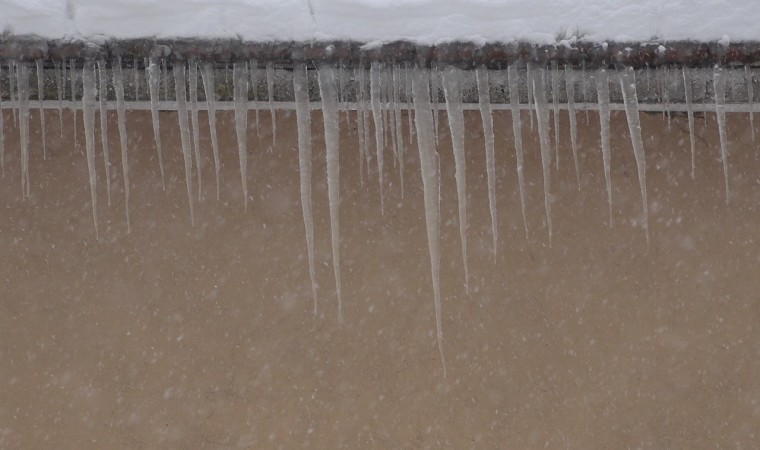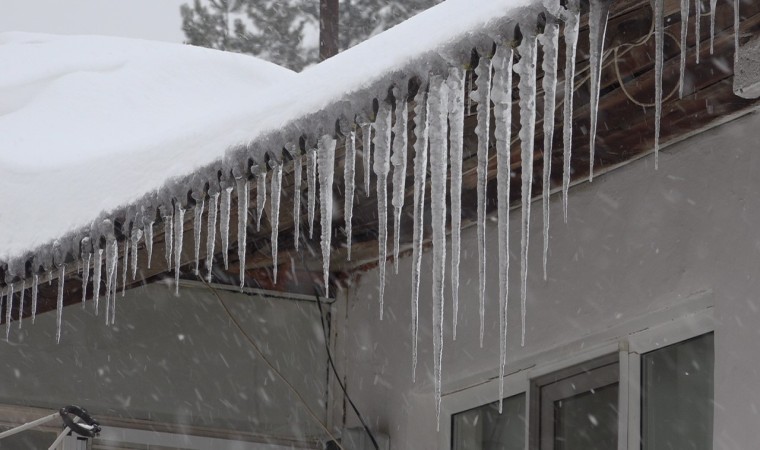 Hava sıcaklığının sıfırın altında 3 derece ölçüldüğü bölgelerde kar yağışı ile birlikte soğuk hava çatılarda buz sarkıtları oluştu.