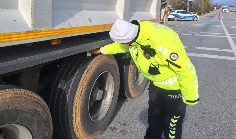 Ekipler İçişleri Bakanlığı talimatına istinaden yük ve yolcu taşıyan araçlar üzerinde lastiklerin kış lastiği olup olmadığını, diş derinlikleri titizlikle kontrol edilerek, ışık donanımı, arka yan koruma çerçevesi ve arka işaret levhası ile reflektörleri kontrol etti.