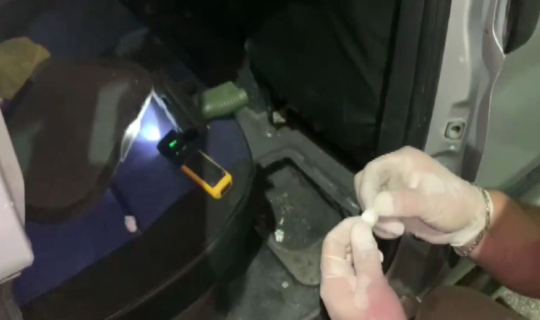 Yapılan aramada paspas altında oluşturulan özel bölmede ve torpido arkasında 2 tabanca, 2.54 gram metamfetamin, hap ve uyuşturucu içme aparatı ele geçirildi.