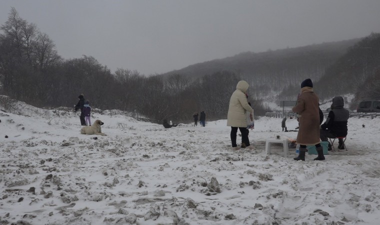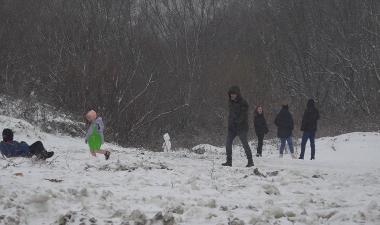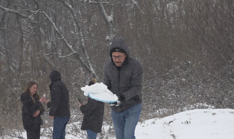 Kırklareli’nin yüksek kesimlerinde kar yağışı etkili oldu. Karın tadını çıkarmak isteyen vatandaşlar Demirköy ilçesi Mahya Tepe’ye gitti.